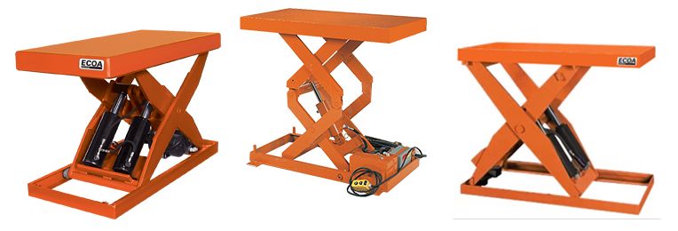 ECOA Scissor lifts are ideal for a wide variety of in-plant lifting and positioning applications. Choose HLT Series Lifts for most applications that require capacities from 2,500 - 6,500 lbs. For heavier loads the HH Series offers capacities from 8,000 - 12,000 lbs. And our CLT Series provides lifting heights up 56.5" in a compact double scissor configuration.