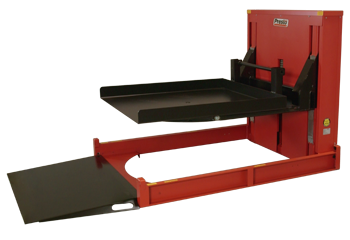 The built-in turntable accepts a wide range of pallet sizes and rotates easily so workers can load/unload from a single position without having to reach across or walk around the pallet.