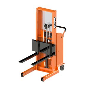 Small and extremely maneuverable these stackers with powered lift are ideal for a wide variety of uses. They are available in 1,000 or 2,000 capacity at a 15" load center. Use them with small open bottom pallets or skids.