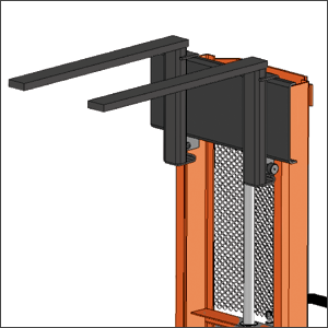 Ideal for overhead installation. Forks can be modified in an inverted position which effectively increases the stackers lowered height and raised height.