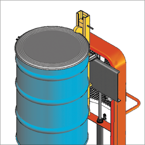 Automatically grabs 30 or 55 gallon drums for hanling and stacking in the vertical position. Mounts on the back plate of any straddle base, fork model stacker. Parrot beak mechanism works with steel or fiber drums.