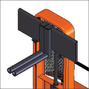 A Cylindrical Ram mounted to the fork carriage for handling rolls, and coils. Rams up to 30" long available.