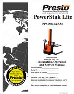 This Manual is for PowerStak Lite Model PPS1500-62NAS - 1500 lb. capacity lite duty, fully powered stackers.